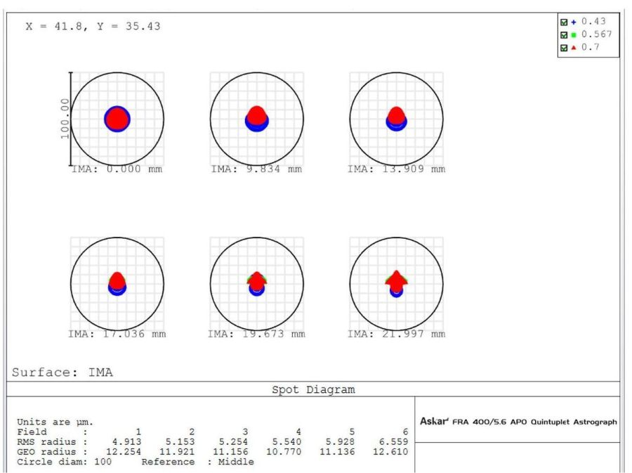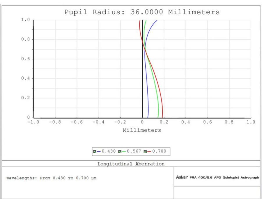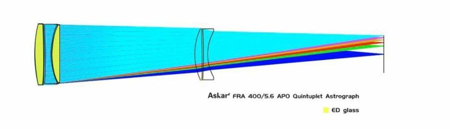 FRA400 má světelnost f/5.6, kterou lze dále snížit volitelným reduktorem ohniskové vzdálenosti, což umožňuje dalekohledu pracovat s clonou f/3.9 a ohniskovou vzdáleností 281 mm, čímž se expoziční čas zkrátí na polovinu.