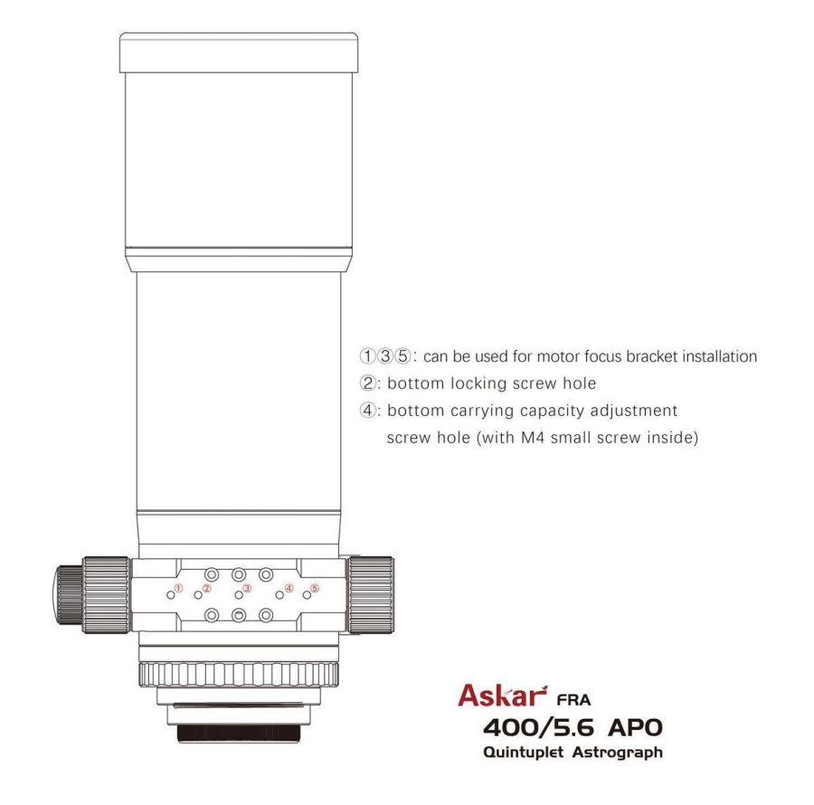 Jako příslušenství lze dokoupit Askar reduktor 0,7x F3.9 pro astrograf FRA400