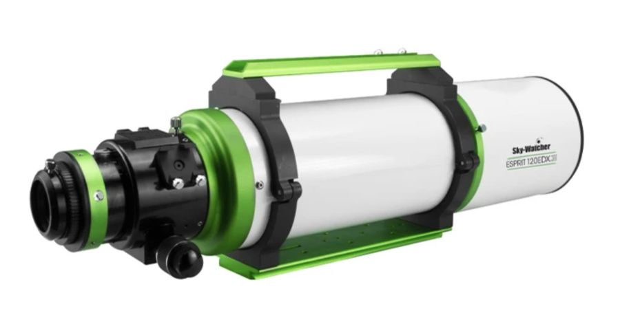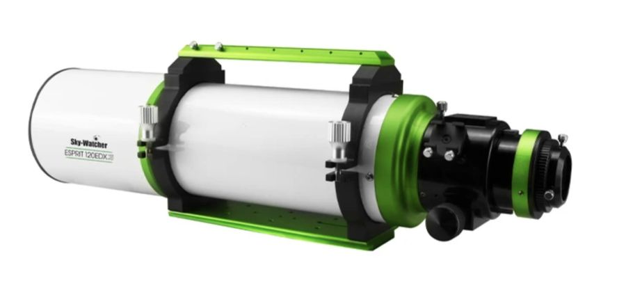 Sky-Watcher Esprit 120 EDX s ohniskovou vzdáleností 840 mm a F/7 je extrémně výkonný astrograf, který nabízí velké, ploché zorné pole a dokonale korigované hvězdy po celém záběru. Speciální volitelný plochač pole zajišťuje, že obraz je rovnoměrně ostřit až k okraji snímače, což vede k obrazovému poli o průměru přibližně 44 mm, vhodnému i pro full-frame fotoaparáty. Zadní zaostření asi 75 mm a 3" zaostřovač umožní pohodlně pracovat s rozsáhlými fotografickými scénami.