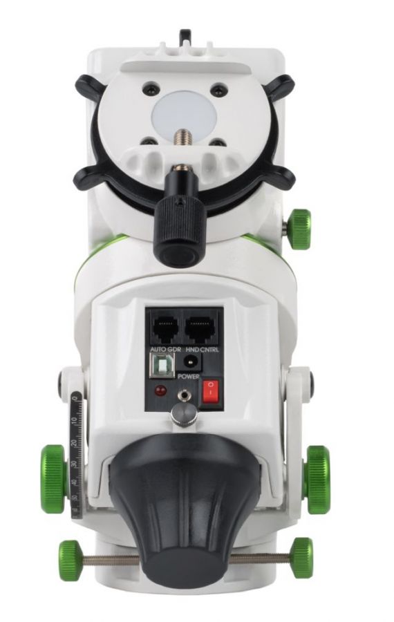 Rozhraní: USB, autoguider (ST4), ruční ovladač SynScan a port SNAP pro ovládání závěrky fotoaparátu DSLR, programovatelný pomocí bezplatné aplikace SynScan Pro.