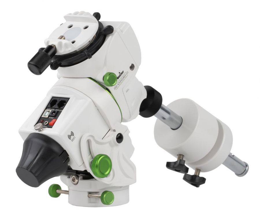 Tato montáž je také vybaven protizávažím, které lze připevnit na dvou místech, standardně podél montážní osy a pod úhlem pro použití v nízkých zeměpisných šířkách. S přidanou funkcí Go-To a různých rychlostí sledování (včetně lunárních, slunečních a hvězdných rychlostí) můžete snadno vyhledávat, pozorovat a fotografovat objekty na noční obloze. S nosností 5 kg je Star Adventurer GTi dokonale vybaven pro práci s digitální zrcadlovkou nebo bezzrcadlovkou se širokoúhlým nebo teleobjektivem a dalším příslušenstvím. Dokonale se hodí pro kompaktní astrofotografické dalekohledy nebo jednoduše standardní optický tubus s upnutím typu Vixen nebo závitem 3/8" pro vizuální pozorování. Sada obsahuje protizávaží o hmotnosti 0,7 kg a 1,6 kg.