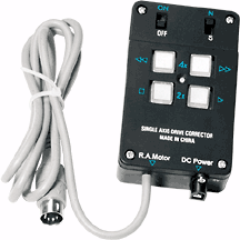 Souprava motoru pro pohon jedné osy RA rychlostí 1x, 2x, 8x a se změnou směru otáčení pro severní a jižní polokouli. Ovládání pomocí ručního ovladače, napájení je ze zásobníku baterií 6V (4x velké monočlánky R20 1,5V). Součástí dodávky jsou komplety motoru, ovladač a zásobník baterií včetně kabelů. Napájecí zdroj 6V lze použít z nabídky uvedené zde. Upozornění: pokud je použit nesprávný napájecí zdroj s vyšším napětím, dojde k zničení elektroniky ovladače.